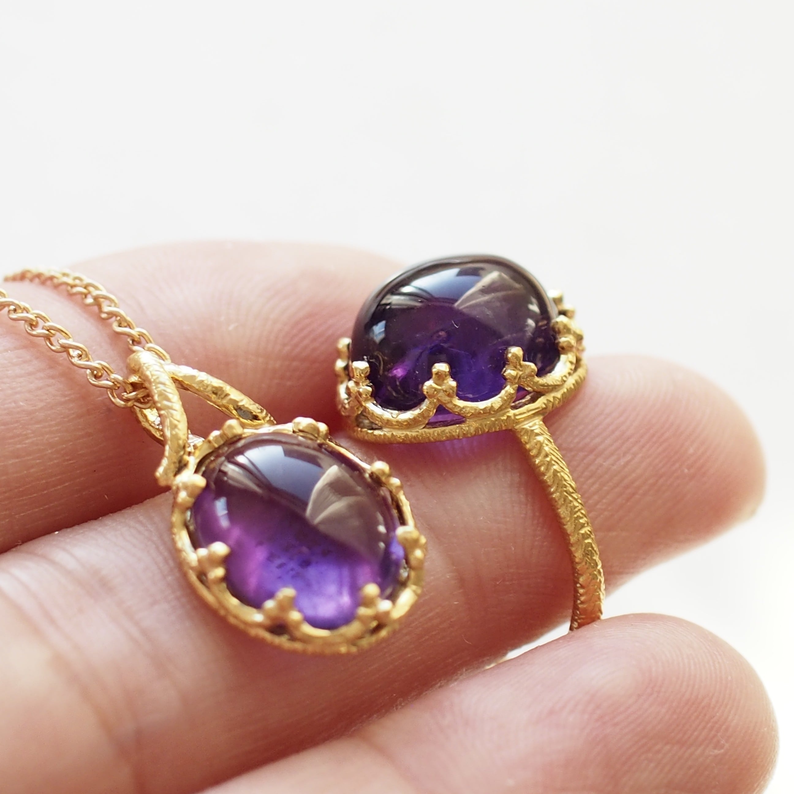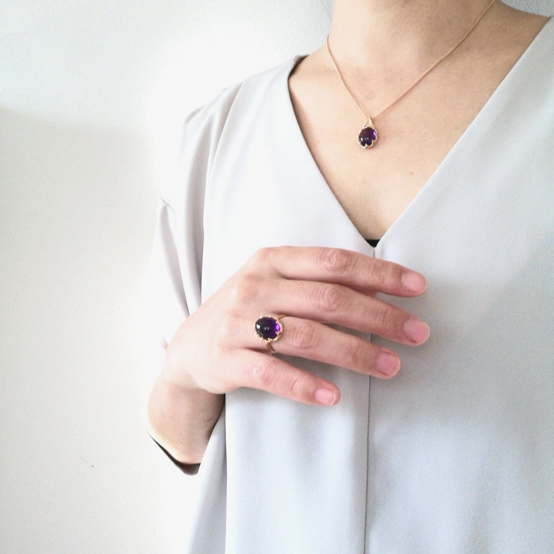 アメジストは美しい紫色が特徴の天然石で、見る人に心の安らぎと癒しをもたらす魅力的なジュエリーです。このSV925のスカラップデザインはアメジストの存在感を引き立て、洗練された印象を与えます。細やかなラスティックなテクスチャーは、どんなスタイルにもマッチし、普段使いから特別なシーンまで幅広くご利用いただけます。