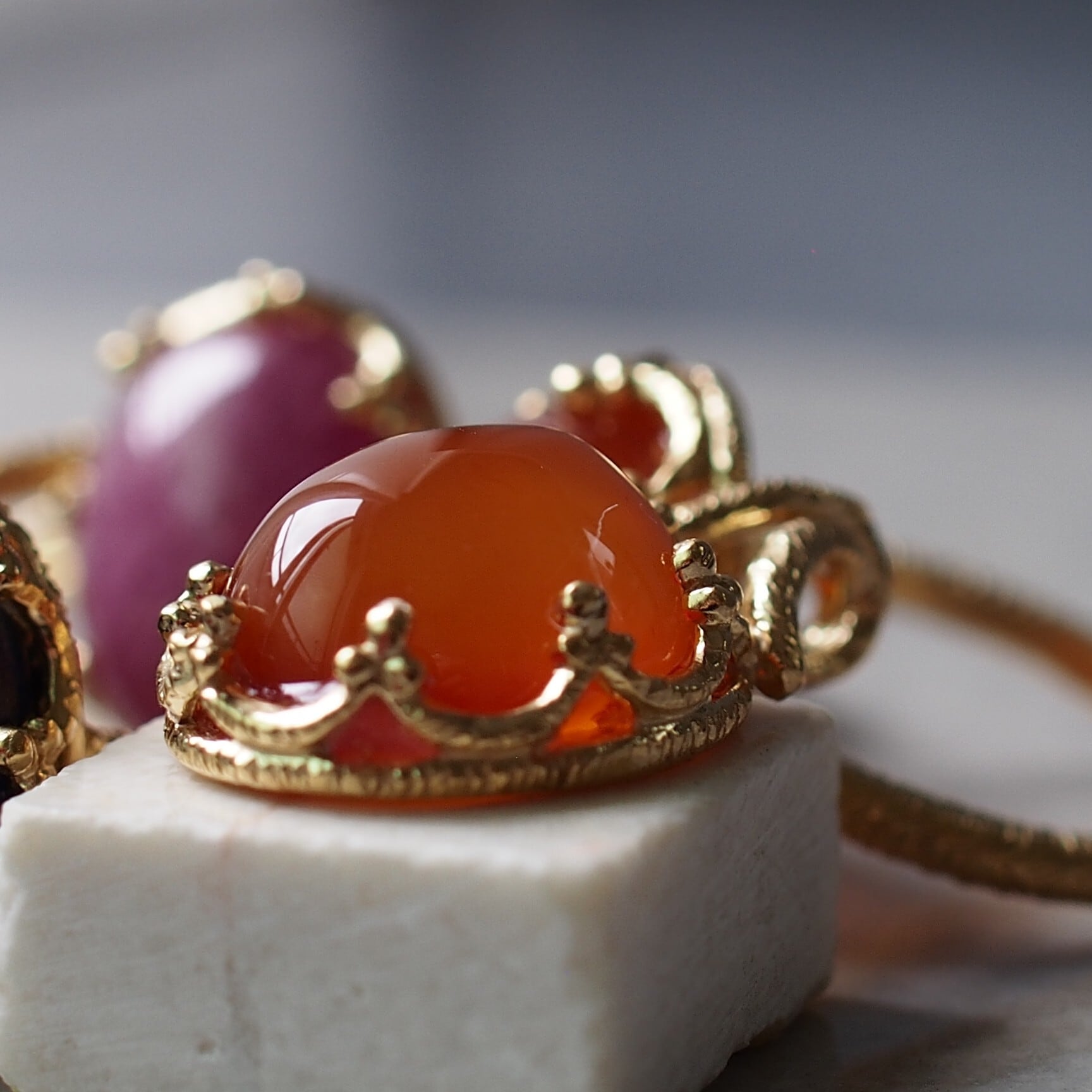 カーネリアンは古代から保護と繁栄の石として多くの人々に親しまれてきました。情熱と活力を象徴するこの石は、持ち主にポジティブなエネルギーをもたらし、自信を高めるとされています。