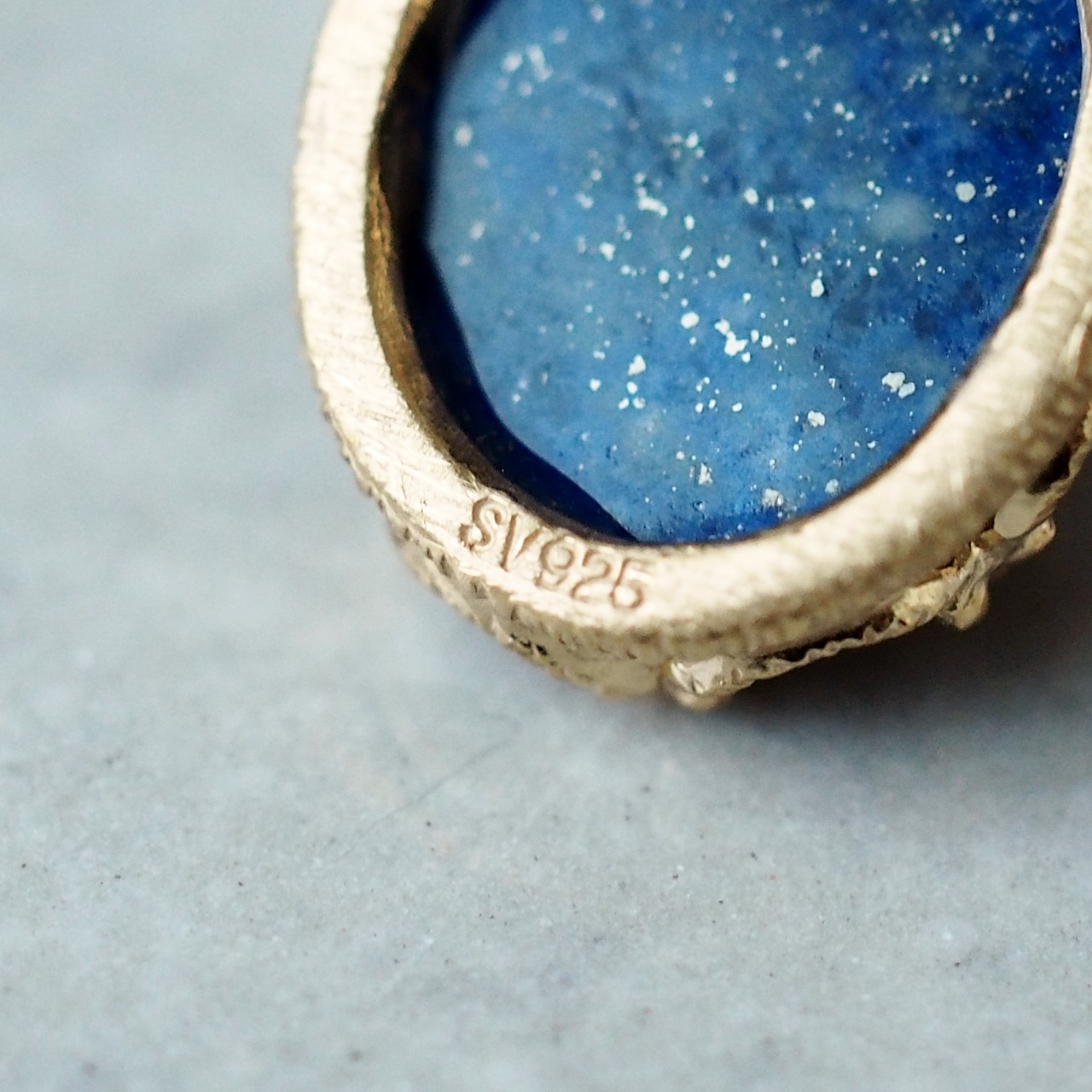 ラピスラズリは深い青色が美しい天然石で、神秘的な輝きが魅力です。シルバー925のスカラップデザインに合わせて、ラピスラズリが一層引き立てられています。ラスティックなテクスチャーが施されており、どんなスタイルにも自然に馴染むアイテムです。