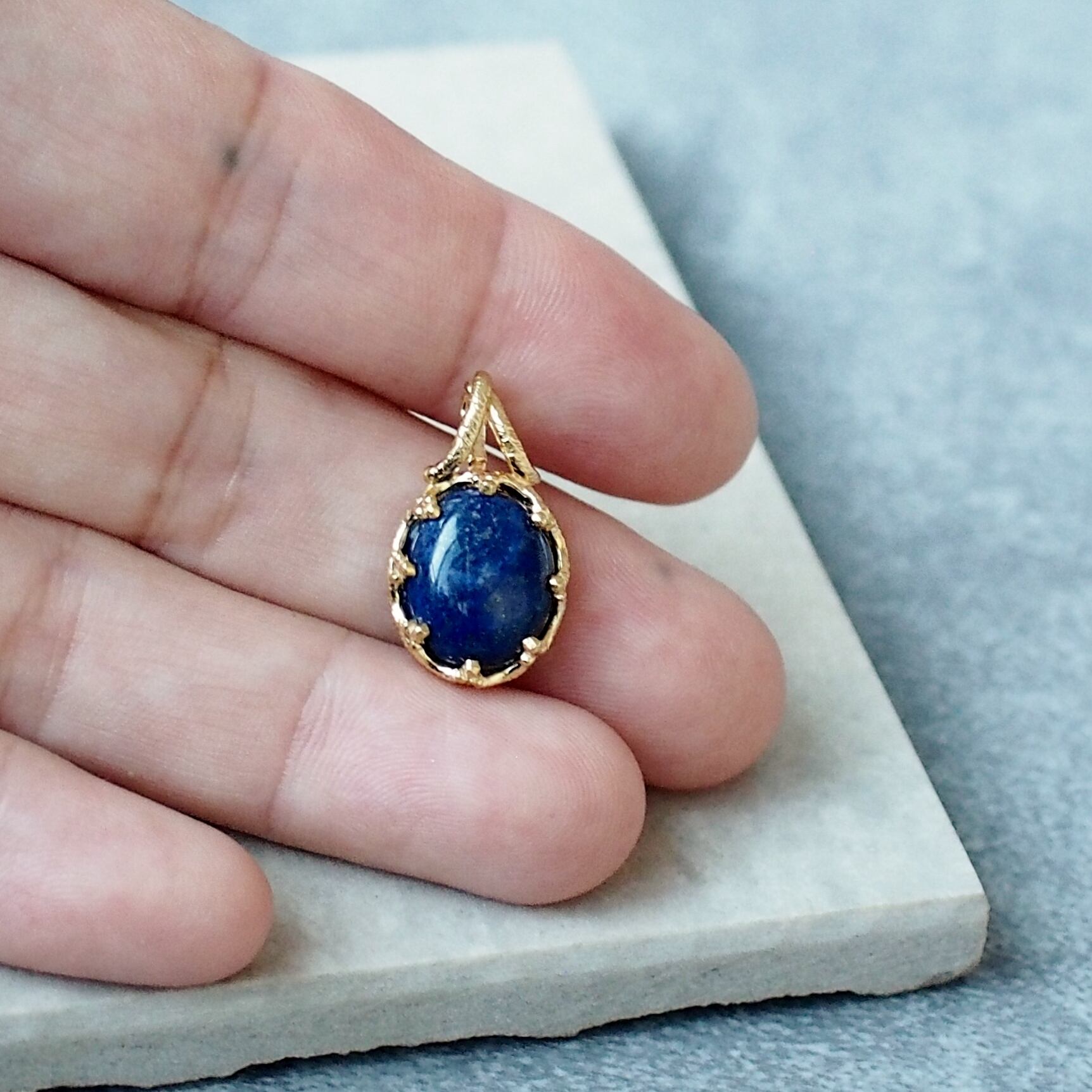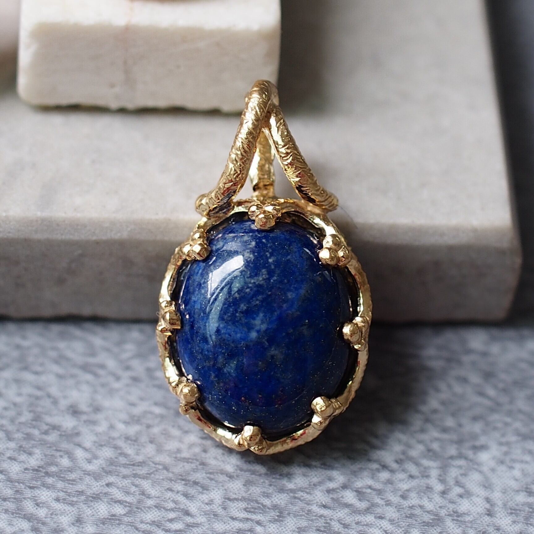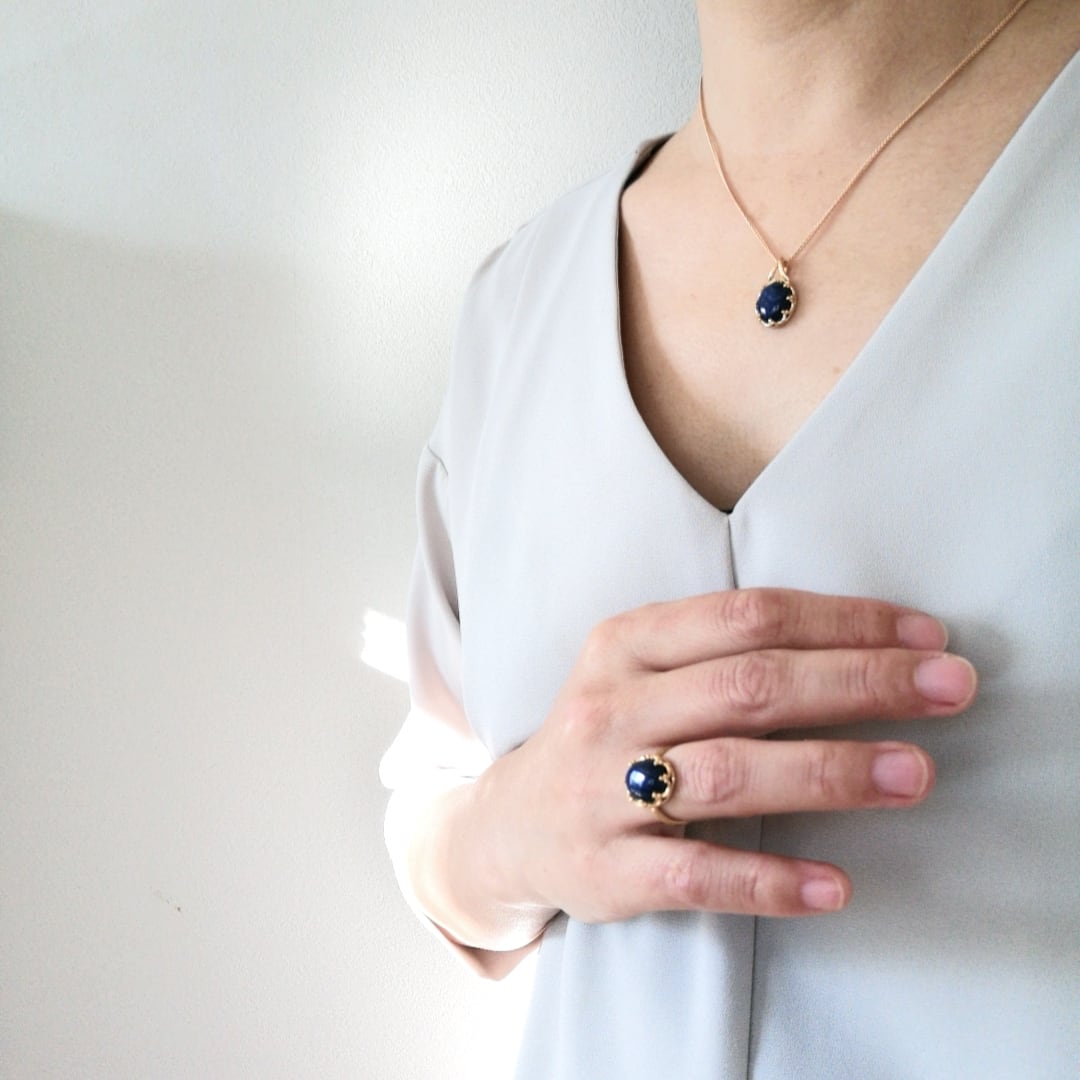 ペンダントを身に着けると、ラピスラズリの持つエネルギーに包まれ、心がリフレッシュされる感覚があります。華やかさと落ち着きを併せ持つスタイルが楽しめます。