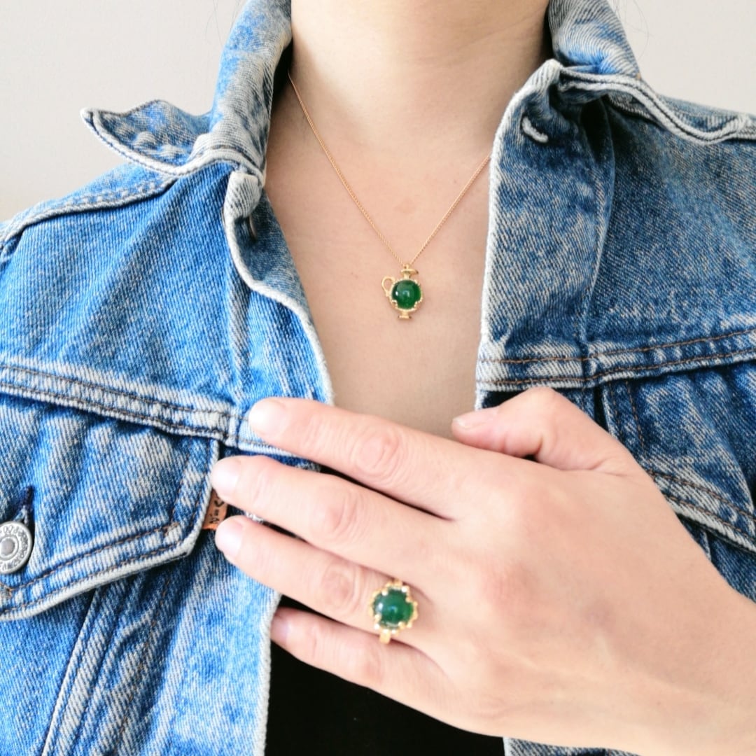 鮮やかなビリジアングリーンがきれいなリングです。グリーンは一年を通して人気のカラー。