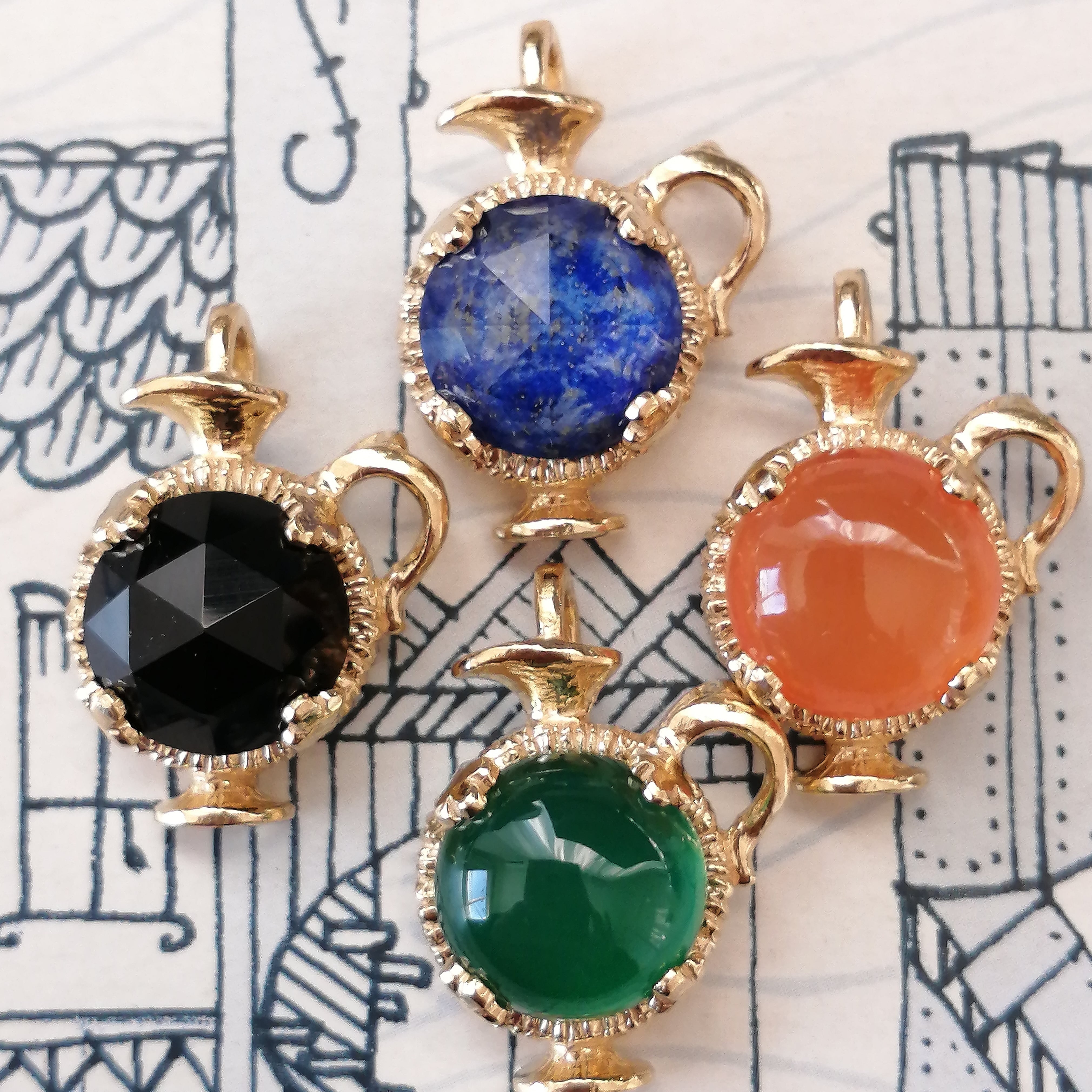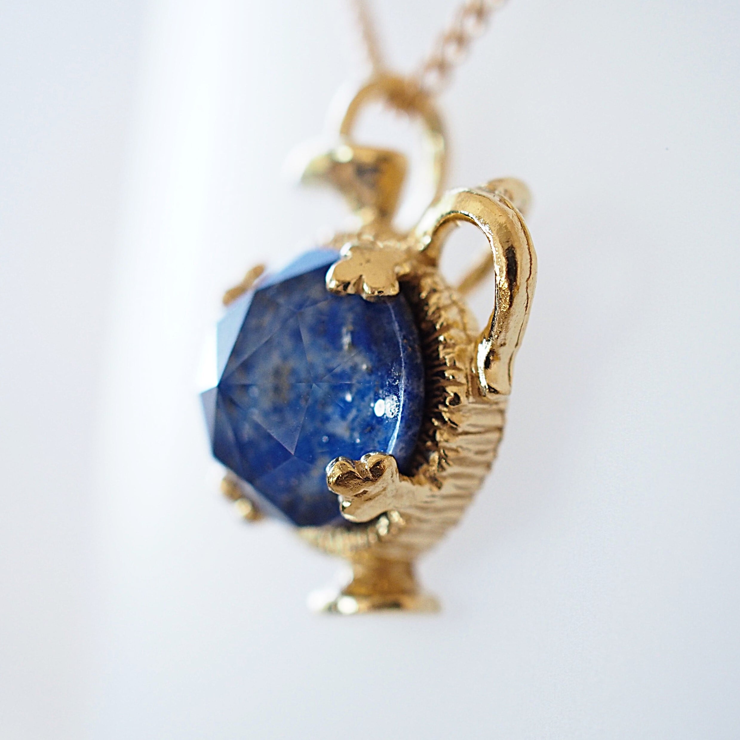 シルバー製の台座は小さな水がめに宝石を入れたような可愛いデザイン。みずみずしい宝石を留めました。オリジナル枠のため画像で細かいところをご確認の上ご購入ください。2通りの方向でチェーンが通ります。