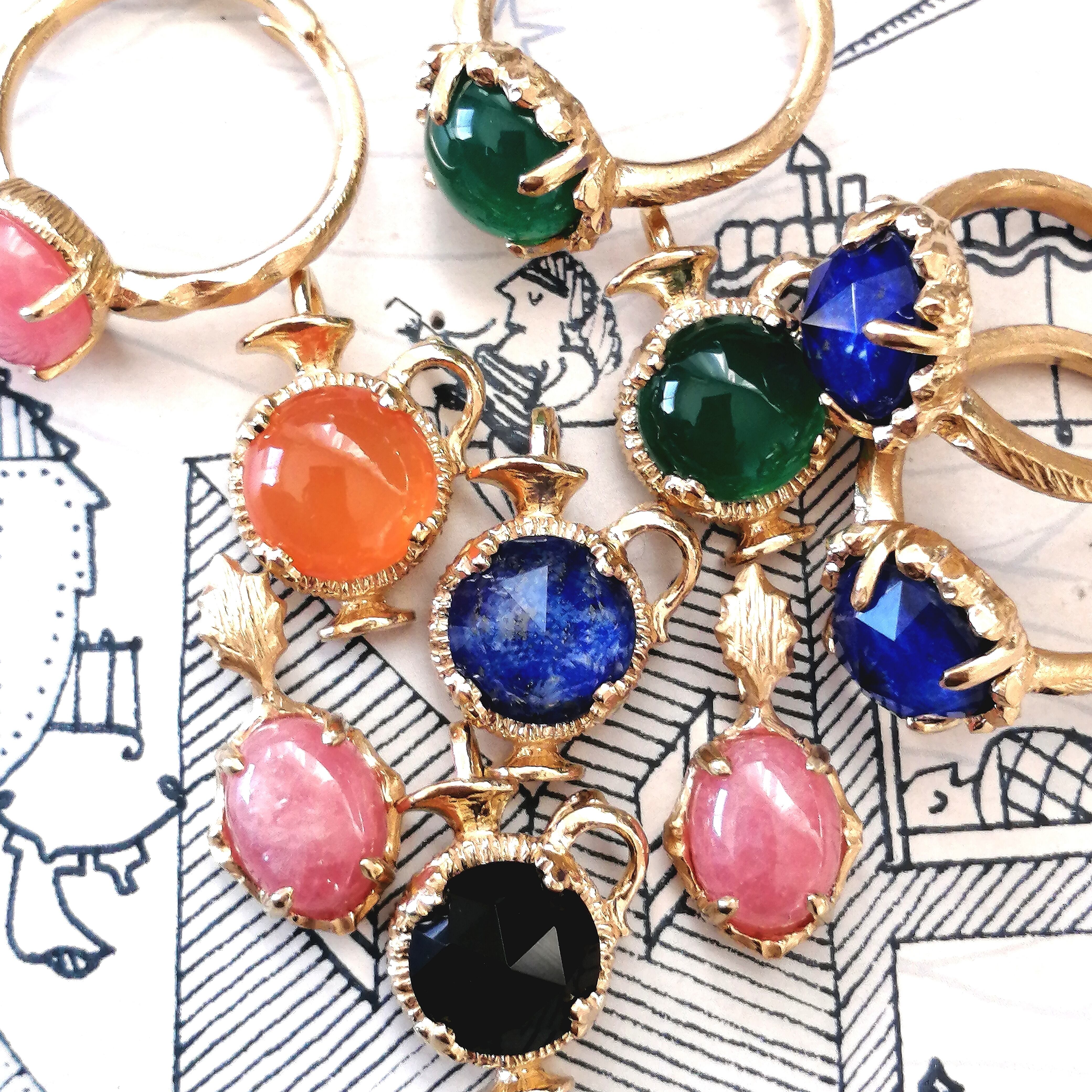 シルバー製の台座は小さな水がめに宝石を入れたような可愛いデザイン。みずみずしい宝石を留めました。オリジナル枠のため画像で細かいところをご確認の上ご購入ください。2通りの方向でチェーンが通ります。